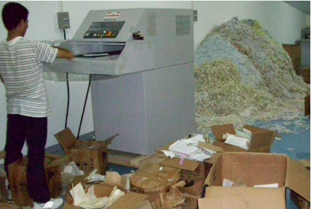 我們剛剛說了紙質的文件可以用燒毀的,但是有沒有想過紙質的文件是砍伐了多少的樹木才制作成的,現(xiàn)在我們用完了之后就把它燒毀,那是多么的浪費,而且又不環(huán)保,不節(jié)能。但是在銷毀公司,他們會把那些紙質的文件全部都剪切成碎紙條,然后再進行回收,可以重新再制作其他的文件,這樣子既保證了被銷毀文件的安全又達到了環(huán)保的作用,何樂而不為呢?