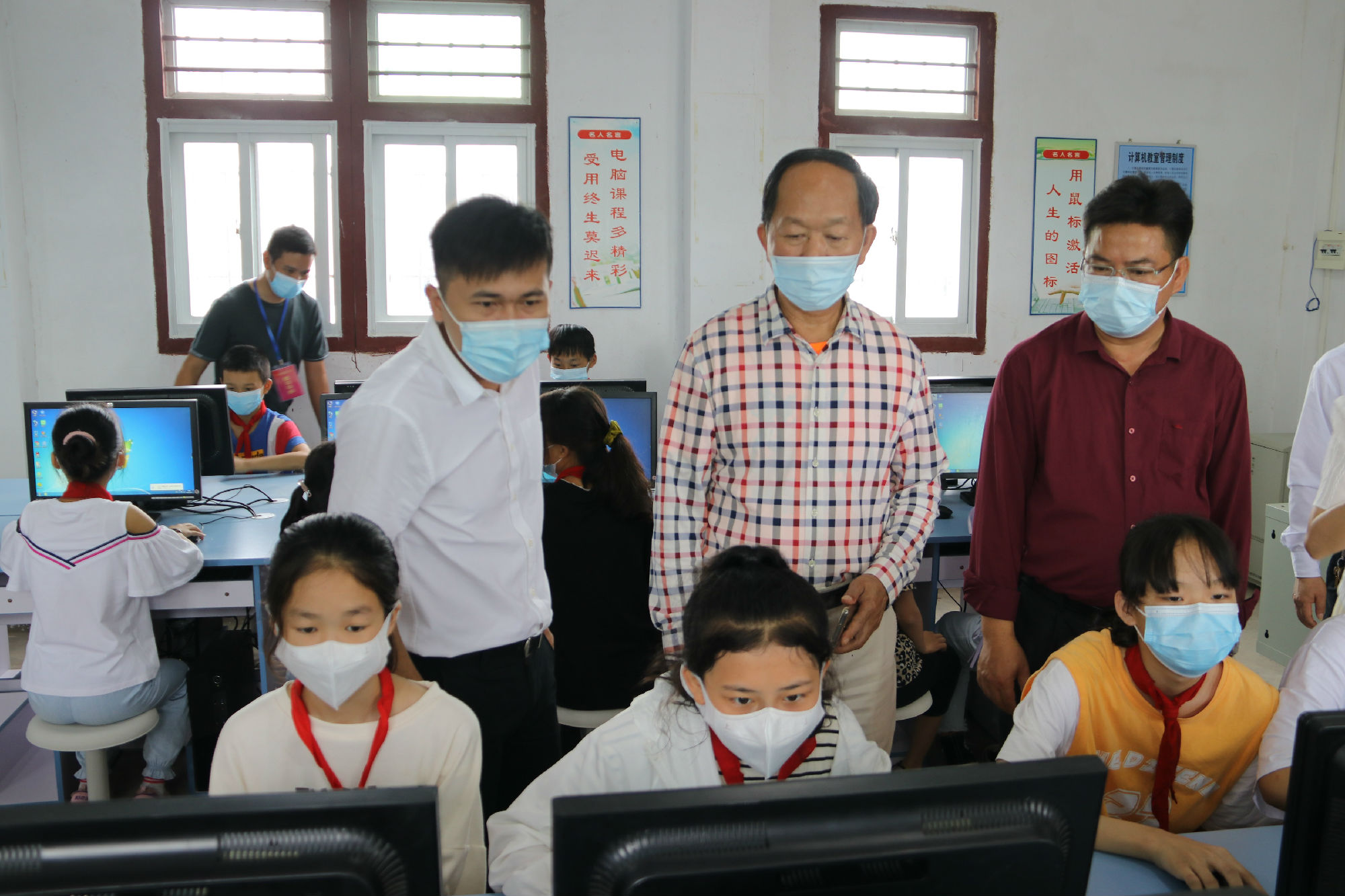 暨南大學(xué)實(shí)驗(yàn)室與設(shè)備管理處設(shè)備管理張龍釗科長(zhǎng)向四鳳小學(xué)贈(zèng)送“綠色愛(ài)心電腦教室”牌匾,四鳳小學(xué)吳樹(shù)豪校長(zhǎng)接收牌匾