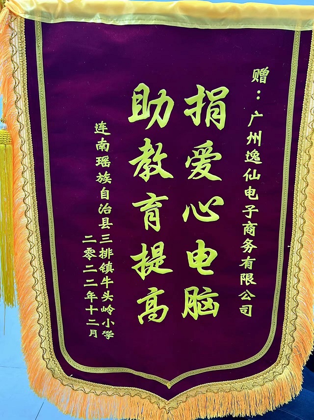捐贈(zèng)方廣州逸仙電子商務(wù)有限公司錦旗和牌匾