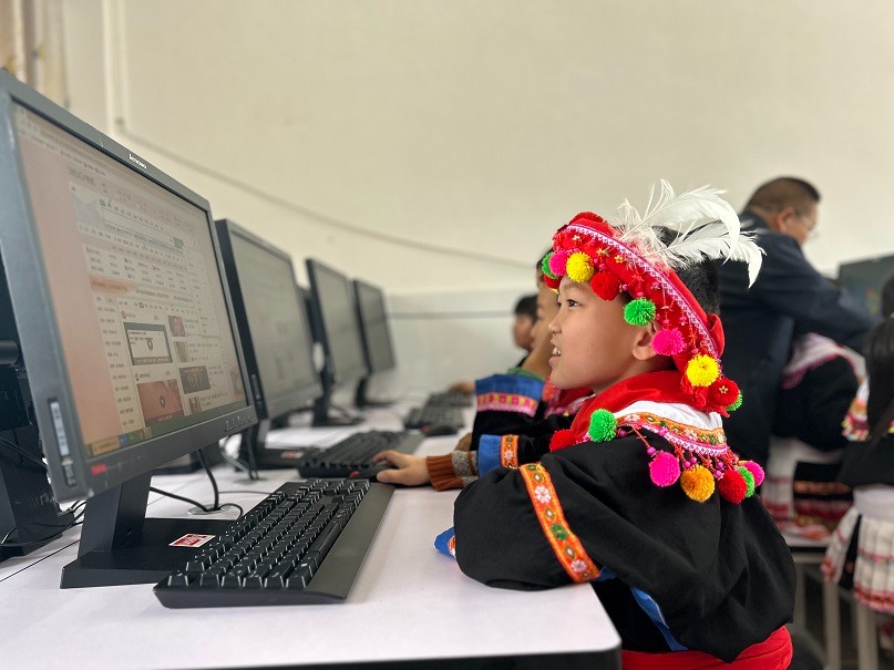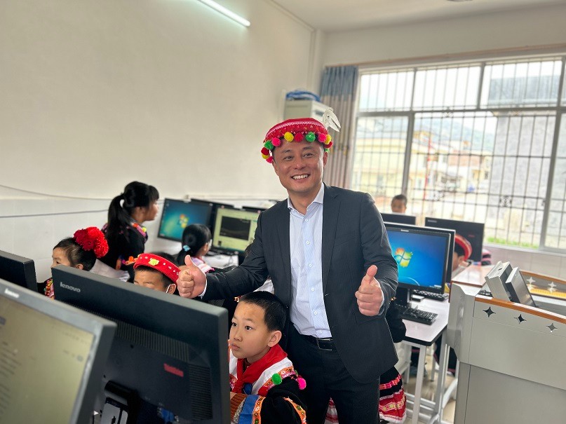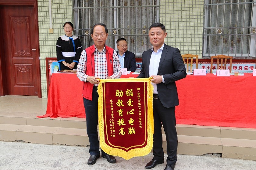 王科副行長向連南瑤族自治縣三排鎮(zhèn)大埂小學(xué)贈送“綠色愛心電腦教室”牌匾