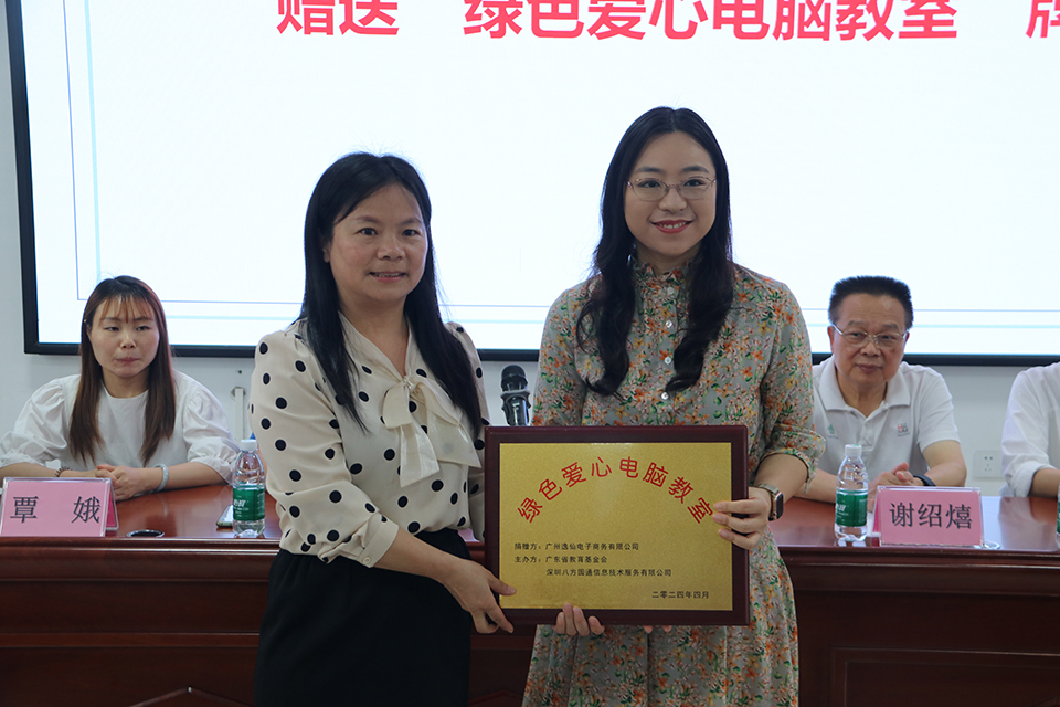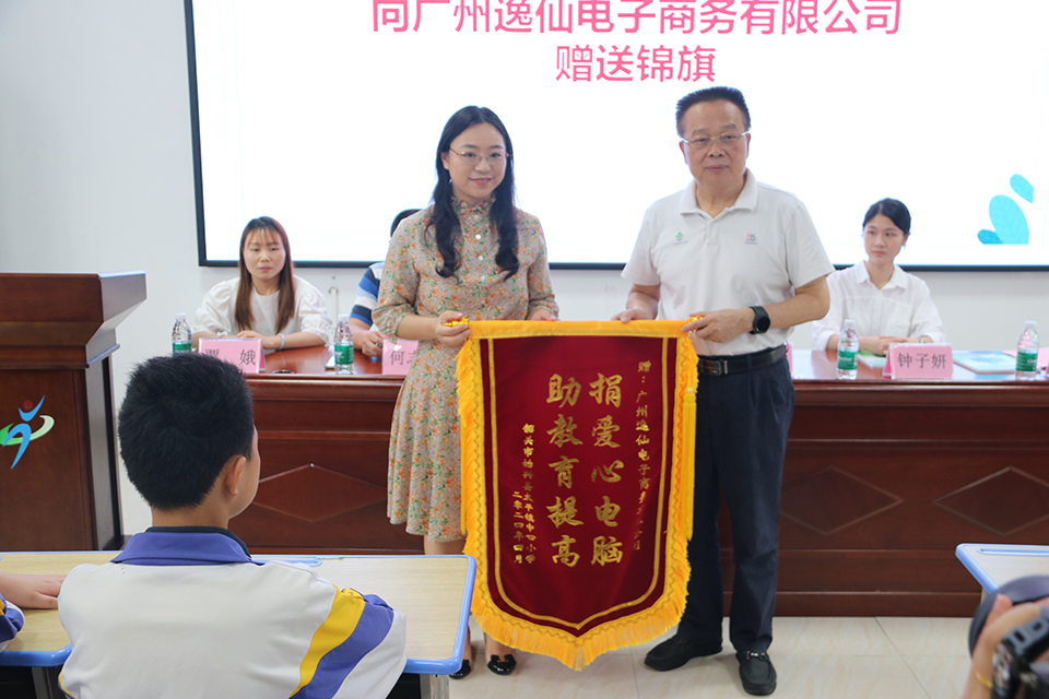 廣州逸仙電子商務(wù)有限公司向太平鎮(zhèn)中心小學(xué)贈送“綠色愛心電腦教室”牌匾