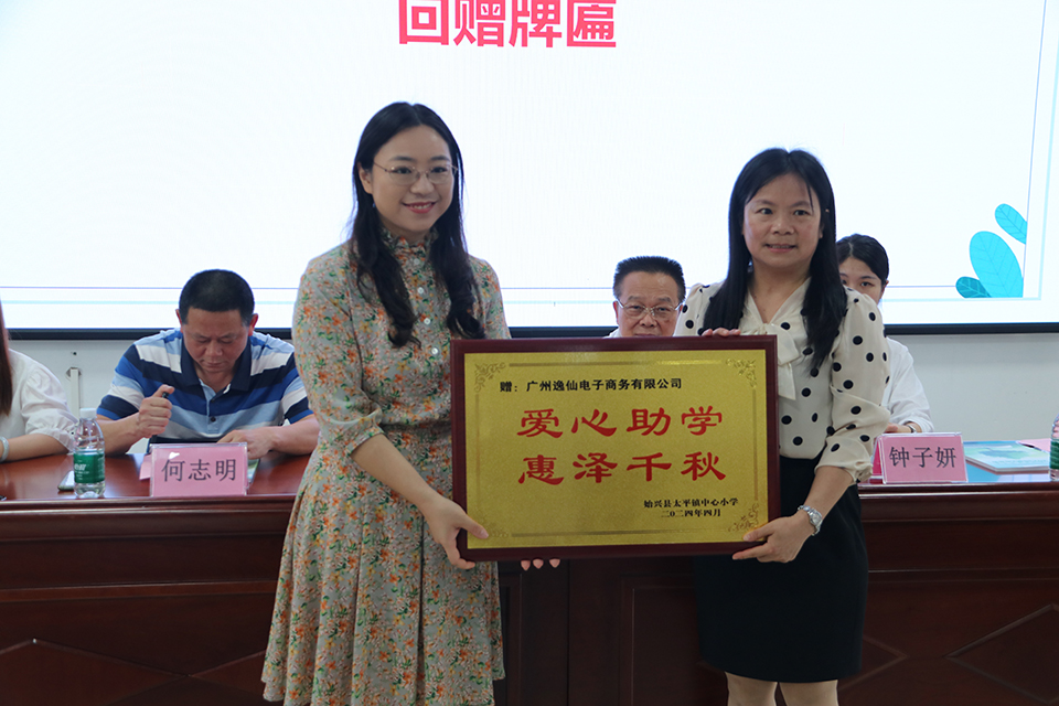 太平鎮(zhèn)中心小學(xué)向廣州逸仙電子商務(wù)有限公司回贈牌匾