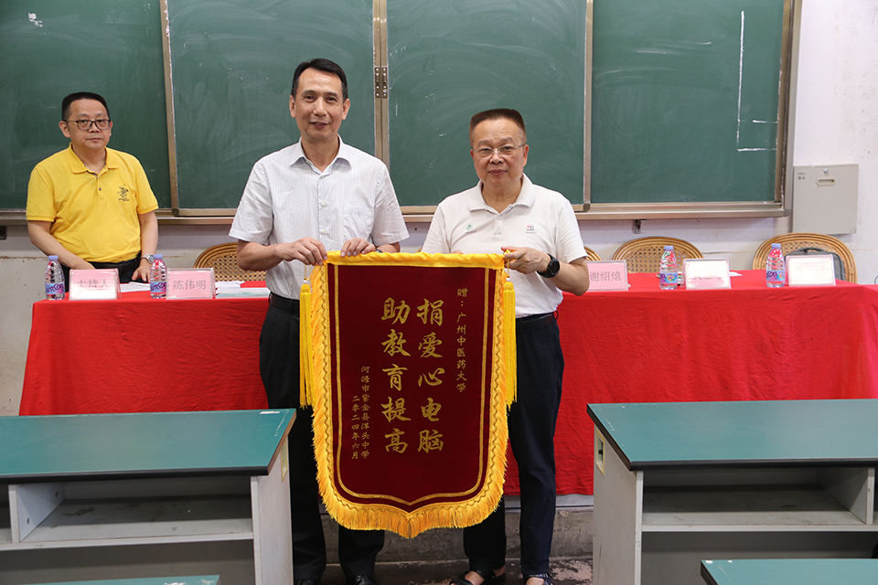 廣州中醫(yī)藥大學(xué)向洋頭中學(xué)贈送“綠色愛心電腦教室”牌匾