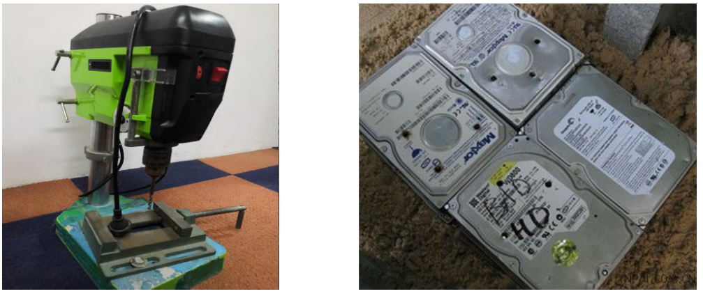 3、打孔:在客戶現(xiàn)場消磁后,消除客戶對消磁后是否能完全清除機(jī)密信息,確保信息不能再恢復(fù)的懷疑,利用打孔機(jī)將存儲介質(zhì)再進(jìn)行物理損壞,改變其物理結(jié)構(gòu),使其徹底報廢。